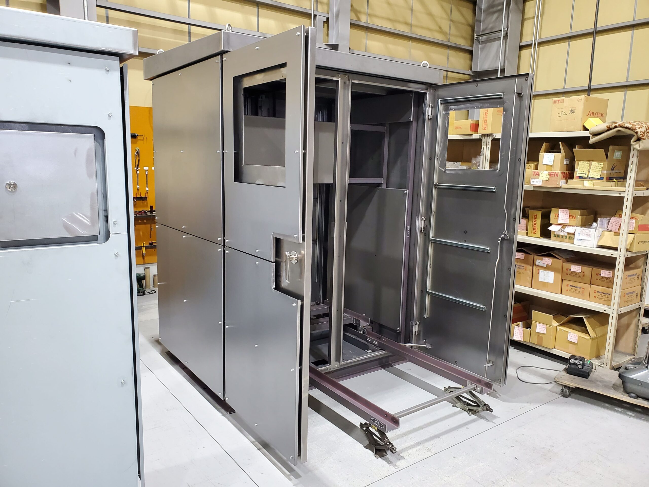 こちらは屋外で使用される大型トランス収納筐体の製作事例です。